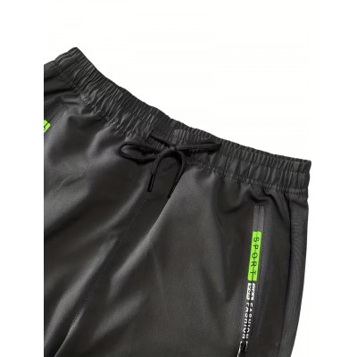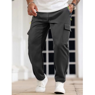 покрытие > Clothing and accessories > 1pc Men's Fashion Solid Color Pants with Zippered and Drawstring Multi-Pocket Casual Breathable Trousers, Suitable for Summer Outdoor Activities