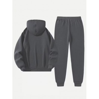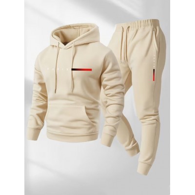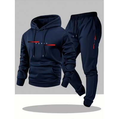 покрытие > Clothing and accessories > [Men's Hoodie & Trousers Set] 2pcs Men's Casual Cartoon Paris Letter Drawstring Hoodie and Sports Trousers Set | Hooded, Loose Fit, Slight Stretch Fabric, Patterned for Fall/Winter